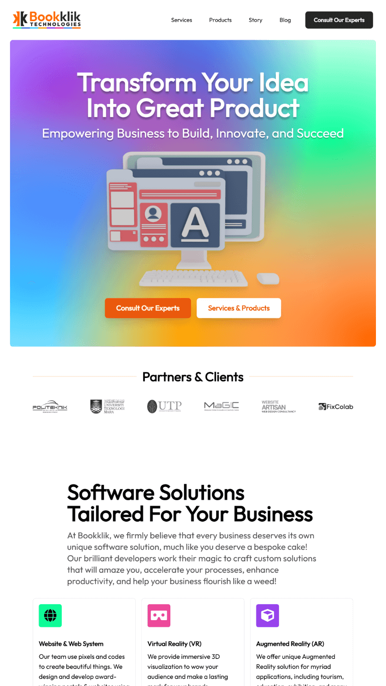 At Bookklik, we firmly believe that every business deserves its own unique software solution, much like you deserve a bespoke cake! Our brilliant developers work their magic to craft custom solutions that will amaze you, accelerate your processes, enhance productivity, and help your business flourish!
